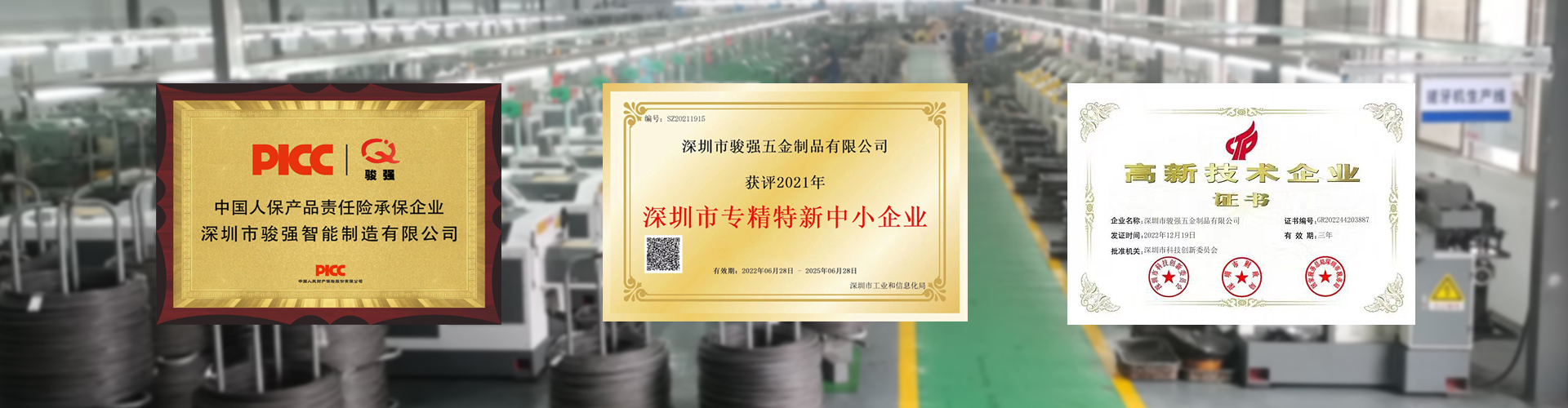 深圳駿強五金制品有限公司是一家專業生產各種國標/非標螺栓、國標/非標螺母、國標/非標彈簧、和各種國標/非標五金沖壓件及國標/非標自動車床件的國標/非標五金制品廠家,其生產的主要有各種國標螺絲,非標的螺栓、螺母、彈簧、和各種五金沖壓件及自動車床件等五金制品,并適用于電視機、計算機、DVD、開關電源、音箱、儀器以及各類電子、電器等電子機械產品,另本公司可根據客戶的需要開發研制、生產各種特殊規格及性能的五金產品,以滿足客戶對五金制品的各種需求。..